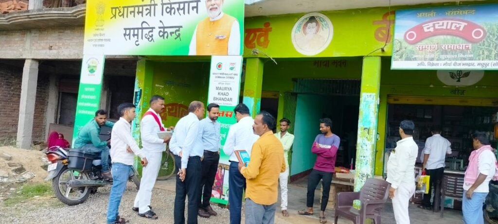 सोनभद्र। जनपद के जिलाधिकारी बीएन सिंह के निर्देशन पर मंगलवार को संयुक्त टीम उत्कर्ष द्विवेदी ज्वांइट मजिस्ट्रेट सदर कमलेश कुमार सिंह जिला कृषि अधिकारी एवं देवेन्द्र सिंह सहायक आयुक्त, सहायक निबन्धन सहकारिता सोनभद्र द्वारा विकास खण्ड करमा के कस्बा मधुपुर में फुटकर उर्वरक विकेताओं के दुकान का निरीक्षण किया गया। जिसमे मेसर्स मौर्या खाद भण्डार मधुपुर नहर, प्रो० बिजय नारायण के प्रतिष्ठान का निरीक्षण के समय प्रतिष्ठान गोदाम में उर्वरक यूरिया शून्य डी०ए०पी० 30 बोरी, एस०एस०पी० 45 बोरी, मेसर्स राधारमन अग्रवाल मधुपुर प्रो० राधारमन अग्रवाल प्रतिष्ठान मे यूरिया शून्य, आई०पी०एल० बाण्ड की डी०ए०पी० 198, पी०पी०एल० पारादीप बाण्ड एन०पी०के० 25 बोरी, एस०एस०पी०17 बोरी पाया गया।