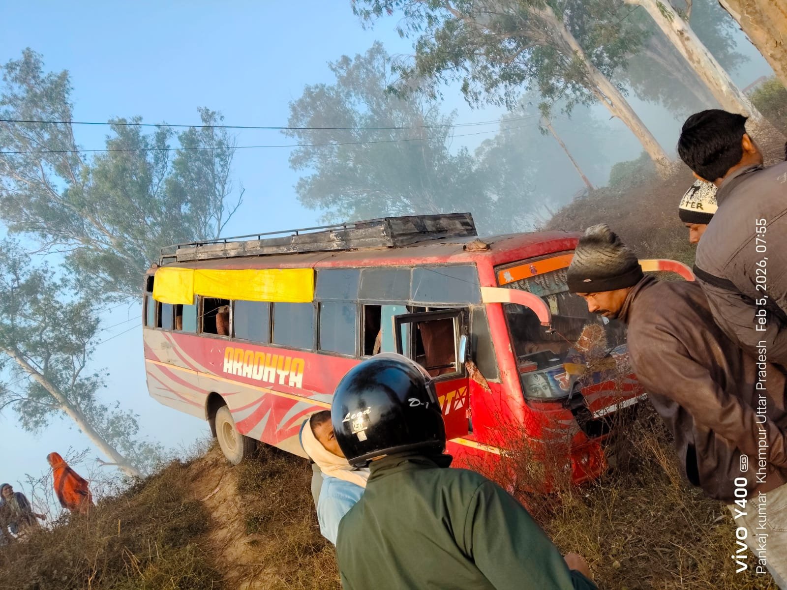 सोनभद्र-: कोन में यात्रियों से भरी बस खाई में पलटी, यात्रियों में दहशत