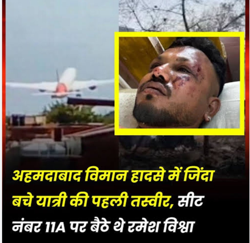 बड़ी खबर-: अहमदाबाद प्लेन क्रैश में अकेले जिंदा बचे रमेश कु. विश्वास, देखें तस्वीर
