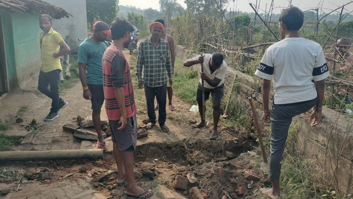 सोनभद्र-: नमामी गंगे द्वारा पाइप लाईन बिछाने के दौरान खोदे गए गढ्ढे को ग्रामीणों ने भरा