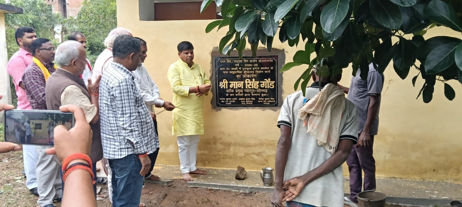 सोनभद्र-: ब्लॉक प्रमुख के द्वारा सामुदायिक शौचालय व चबूतरा का किया गया शिलान्यास
