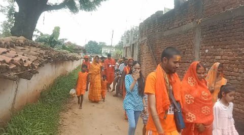 सोनभद्र-: म्योरपुर क्षेत्र से कांवरियों का जत्था बाबा धाम के लिए रवाना