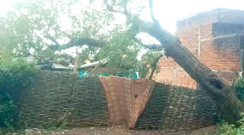 सोनभद्र-: बारिश की वजह से दलित महिला के घर पर गिरा शीशम का पेड़