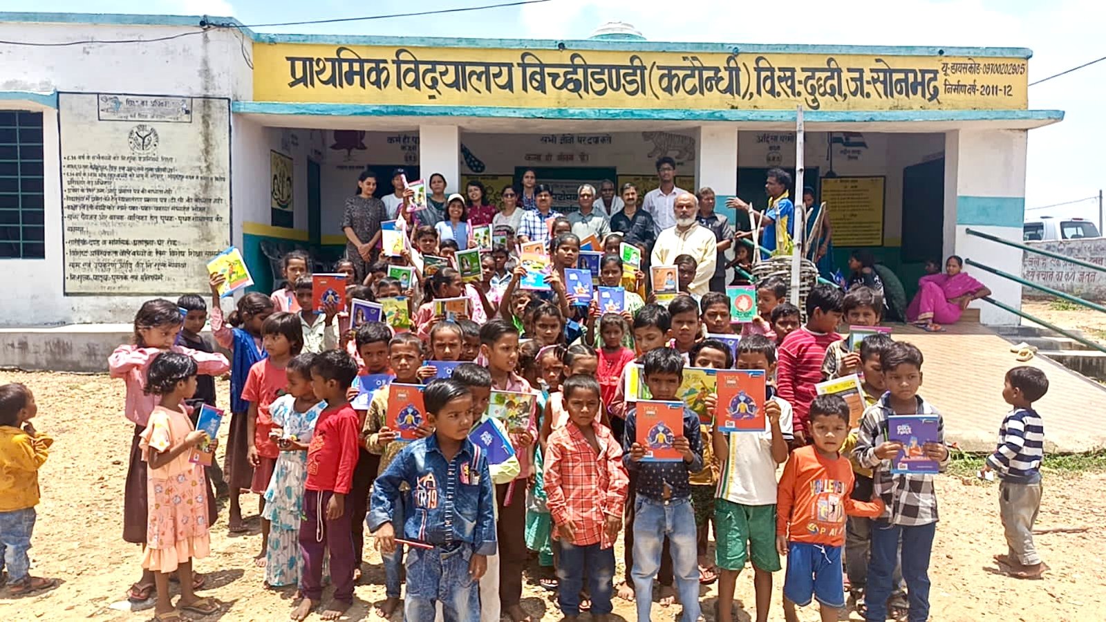 सोनभद्र-: परोपकार सेवा समर्पण समिति द्वारा स्कूली बच्चों में किया गया वस्त्र कॉपी पेंसिल व मिष्ठान का वितरण
