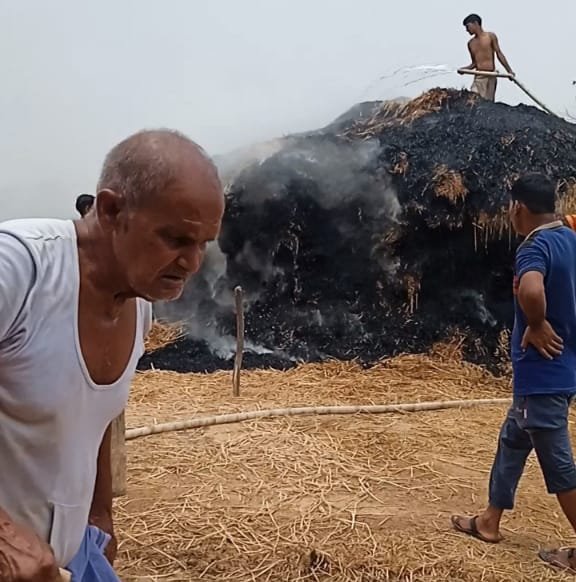 सोनभद्र-: कुड़वा में अज्ञात कारणों से पुआल में लगी आग, ग्रामीणों ने किया मुआवजे की मांग