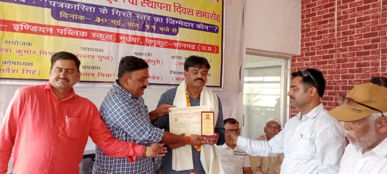 सोनभद्र-: रेणुकूट में भारतीय पत्रकार एसोसिएशन द्वारा हिन्दी पत्रकारिता दिवस एवं 9वां स्थापना दिवस हर्षोल्लास के साथ संपन्न