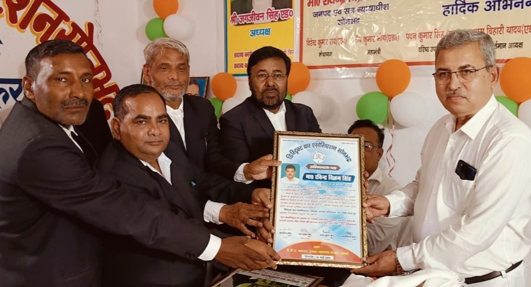 सोनभद्र-: डिस्ट्रिक्ट बार एसोसिएशन ने किया सेवानिवृत्त जिला जज रविंद्र विक्रम सिंह को विदाई समारोह