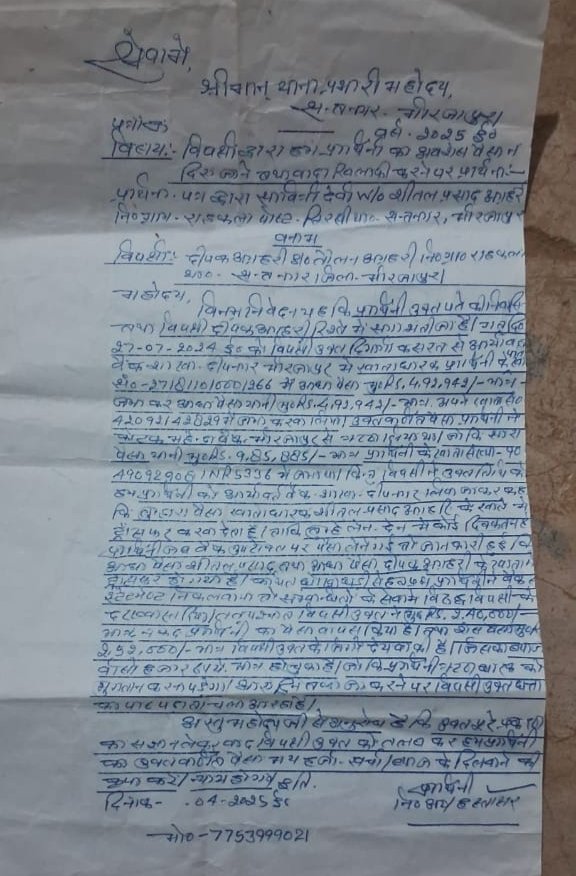 मिर्जापुर ब्यूरो कार्यालय मिर्जापुर: एक चौंकाने वाली घटना में, सावित्री देवी नामक एक फरियादी ने संतनगर थाना प्रभारी से न्याय की गुहार लगाई है। ...