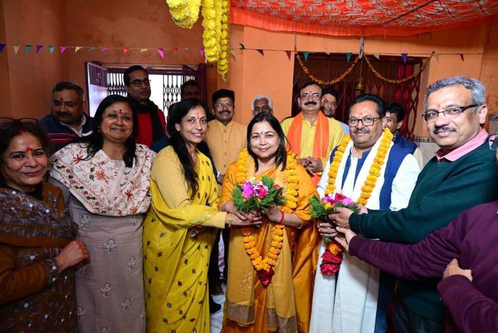 इस विशेष अवसर पर मां सरस्वती के अनन्य भक्त एनटीपीसी रिंहद के परियोजना प्रमुख कार्यकारी निदेशक अनिल श्रीवास्तव एवं वर्तिका महिला मंडल की अध्यक्षा शिखा श्रीवास्तव को अंग वस्त्र एवं स्मृति चिन्ह भेंट कर उन्हें सम्मानित किया गया। आज उनका वैवाहिक वर्षगांठ होने के कारण मंदिर प्रांगण में उपस्थित सभी भक्तों ने उन्हें बधाई भी दिया। मुख्य महाप्रबंधक संजय असाटी, नीलु असाटी, महाप्रबंधक पी के नायक, महाप्रबंधक सीएमओ मोनीषा कुलश्रेष्ठ, मानव संसाधन प्रमुख राजेश बोई पोई,अपर महाप्रबंधक सिद्धार्थ, मंदिर समिति के अध्यक्ष संजीव खेड़ा, उपाध्यक्ष योगेश त्रिपाठी, निशांत कमल, राकेश राय, प्रमोद द्विवेदी, शशांक मालवीय, संजय कुमार के साथ सैकड़ों भक्तजनों ने उनके उत्तम स्वास्थ्य, दीर्घायु जीवन एवं उज्ज्वल भविष्य की कामना की। मंदिर समिति के अध्यक्ष अपर महाप्रबंधक संजीव खेड़ा ने अपने संबोधन में कहा कि मां सरस्वती एवं रिहंदेश्वर महादेव की कृपा आप दोनों पर सदैव बनी रहे। इस अवसर पर विशेष भक्तिमय सांस्कृतिक कार्यक्रम आयोजित किया गया। मिथिलेश शर्मा ने अपनी भक्तिमय प्रस्तुति से समा बांध दिया।