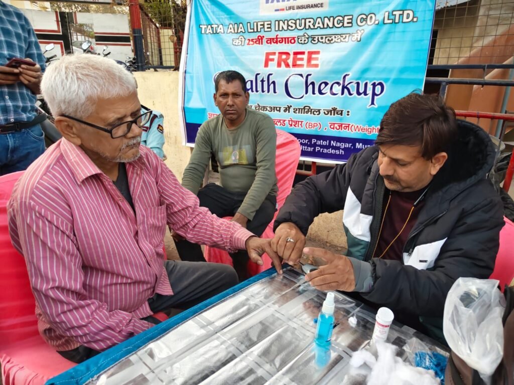 सोनभद्र। -: जनपद सोनभद्र के रेणुकूट स्थित टाटा ए.आई.ए. लाइफ रेणुकूट(सोनभद्र) ब्रांच SD02 द्वारा 25वीं वर्षगांठ पर क्लस्टर हेड अजय सिंह एवं असिस्टेंट ब्रांच मैनेजर ऋषि झा के नेतृत्व में रेणुकूट पुलिस चौकी के पास फ्री हेल्थ चेकअप जिसमें शुगर, बीपी एवं वजन का आयोजन किया गया।