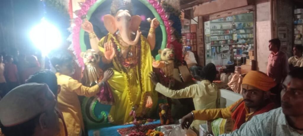 सोनभद्र। म्योरपुर स्थानीय कस्बे में शुक्रवार को गणेश चतुर्थी का शोभा यात्रा निकाल कर किया गया समापन। जहां पर भंडारे का भी आयोजन किया गया था वही देखा जाए की गुरुद्वारा के पास स्थित शिव मंदिर में तीन दिन से चल रहे श्री गणेश महोत्सव में भक्ति का माहौल मिला जहां पर लोग भक्ति में रमे हुए थे। वही बीती रात मन्दिर प्रांगण में देवी जागरण का आयोजन किया गया था श्रद्धालु अगली रातभर भक्ति में डूबे हुए थे एवं रात भर झूमते रहे।