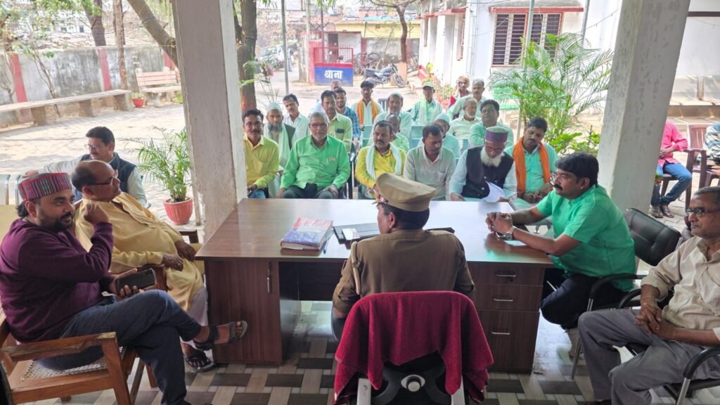 सोनभद्र म्योर पुर थाना परिसर में शनिवार को थाना अध्यक्ष रामदास राम के अध्यक्षता में शांति समिति की बैठक आयोजित की गई आगामी ईद और चैत्र नवरात्रि के त्योहारों को मध्येनजर शांति और सौहार्द बनाए रखने की विस्तृत चर्चा की गई। बैठक में दोनों समुदायों द्वारा त्योहारों पर आयोजित होने वाले कार्यक्रमों की जानकारी ली गई पुलिस ने संभावित समस्याओं या विवादों के बारे में भी पूछा इस पर म्योरपुर और किरवानी के सदर ने बताया कि दोनों समुदाओं के लोग एक दूसरे के कार्यक्रमों में सहयोग करते हैं और आपसी टकराव की कोई स्थिति नहीं है थाना अध्यक्ष रामदरस राम ने उपस्थित लोगों से आपसी भाईचारा और सौहार्द बनाए रखने की अपील की है।