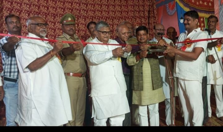 सोनभद्र-: रामलीला मंचन का राजेंद्र सिंह बघेल एवम मानसिंह गौड़ ने संयुक्त रूप से फीता काटकर किया मुकुट पूजन