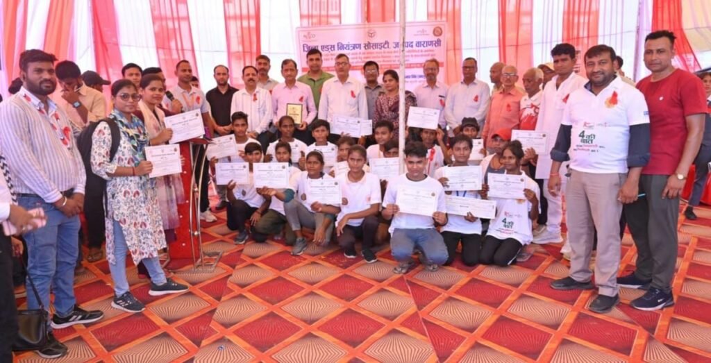 हरहुआ-वाराणसी। युवा महोत्सव 2025-26 के अवसर पर वाराणसी जनपद में जिला एड्स नियंत्रण समिति, वाराणसी द्वारा काशी कृषक इंटर कॉलेज हरहुआ वाराणसी के प्रांगण में रेड रन मैराथन की दौड़ विभिन्न वर्ग (महिला पुरुष एवं ट्रांसजेंडर) में के बीच आयोजित किया गया जिसमें महिला वर्ग में प्रथम खुशबू सरोज द्वितीय पूनम यादव एवं तृतीय स्थान सुमन पटेल ने प्राप्त किया। पुरुष वर्ग में प्रथम रोहन द्वितीय प्रिंस यादव व तृतीय स्थान अभिषेक प्रजापति ने प्राप्त किया तथा ट्रांसजेंडर समूह में प्रथम समीर राजभर द्वितीय अंशु विश्वकर्मा एवं आशीष सिंह ने तृतीय स्थान प्राप्त किया। 30 जुलाई को जनपद के विभिन्न विद्यालयों में रेड क्विज प्रतियोगिता का आयोजन किया गया। जिसमें प्रथम यथार्थ यादव, द्वितीय प्रेम शंकर गुप्ता एवं तृतीय स्थान जान्हवी पाठक ने प्राप्त किया। सभी विजेता प्रतिभागियों को मेडल, प्रमाण पत्र तथा धनराशि का प्रतीकात्मक चेक प्रदान कर सम्मानित किया गया। समस्त सहभागियों को सहभागिता प्रमाण पत्र प्रदान किया गया।