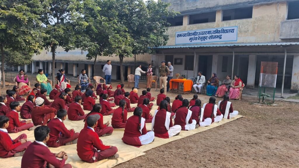 सोनभद्र। जनपद सोनभद्र में पुलिस अधीक्षक सोनभद्र अभिषेक वर्मा के निर्देशन पर जनपद में चलाये जा रहे साइबर जागरूकता, मिशन शक्ति तथा सड़क सुरक्षा के अंतर्गत चलाए जा रहे इस विशेष अभियान के क्रम में 29 नवम्बर को क्षेत्राधिकारी पिपरी अमित कुमार द्वारा समन्वय विद्या मंदिर उच्चतर माध्यमिक विद्यालय, मुर्धवा रेणुकूट में जागरूकता कार्यक्रम आयोजित किया गया।कार्यक्रम के दौरान क्षेत्राधिकारी पिपरी द्वारा विद्यालय के छात्र-छात्राओं को निम्न विषयों पर विस्तृत जानकारी एवं उपयोगी सुझाव प्रदान किए गए