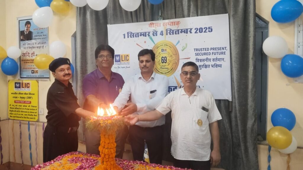 रेणुकूट। भारतीय जीवन बीमा निगम (एलआईसी) की स्थानीय शाखा में सोमवार को 69वां स्थापना दिवस हर्षोल्लास और धूमधाम के साथ मनाया गया। इस अवसर पर शाखा परिसर को रंग-बिरंगे गुब्बारों और आकर्षक सजावट से संवार दिया गया था। माहौल पूरी तरह उत्सवी नजर आ रहा था। कार्यक्रम का शुभारंभ मुख्य अतिथि आईडीबीआई बैंक के मैनेजर मनीष कुमार तथा शाखा प्रबंधक संतोष कुमार पांडेय ने संयुक्त रूप से दीप प्रज्वलित कर किया। इसके बाद उपस्थित सभी अधिकारियों और अभिकर्ताओं ने निगम गीत गाकर एलआईसी के गौरवशाली इतिहास को याद किया।