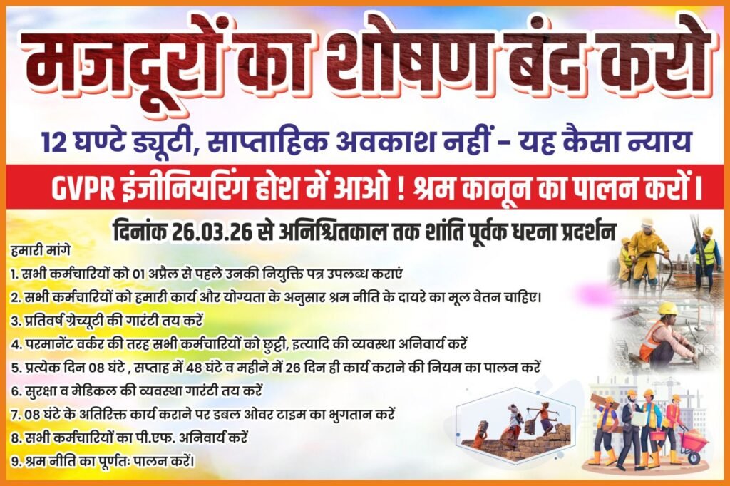 बीजपुर /सोनभद्र। भारत सरकार की महत्वाकांक्षी योजना जल जीवन मिशन के झीलों बिजपुर परियोजना पर कार्यदाई एजेंसी GVPR द्वारा श्रमिकों के शोषण की सारी शिमाएं पार कर दिया गया है। जिसके चलते सालों से शोषित कर्मचारीयो का एजेंसी के प्रति आक्रोश व्याप्त है और गुरुवार से कर्मचारियों ने कार्यरत एजेंसी के खिलाफ विशेष रूप से धरना प्रदर्शन कर अनिश्चितकाल तक कार्य बंद करने का आगाज कर दिया है।