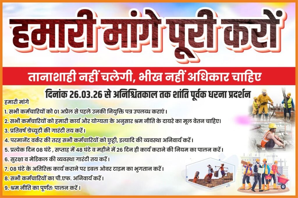 गुरुवार से अनिश्चितकालीन धरना प्रदर्शन का आगाज
