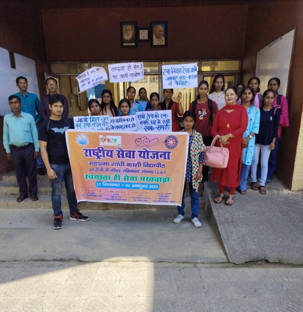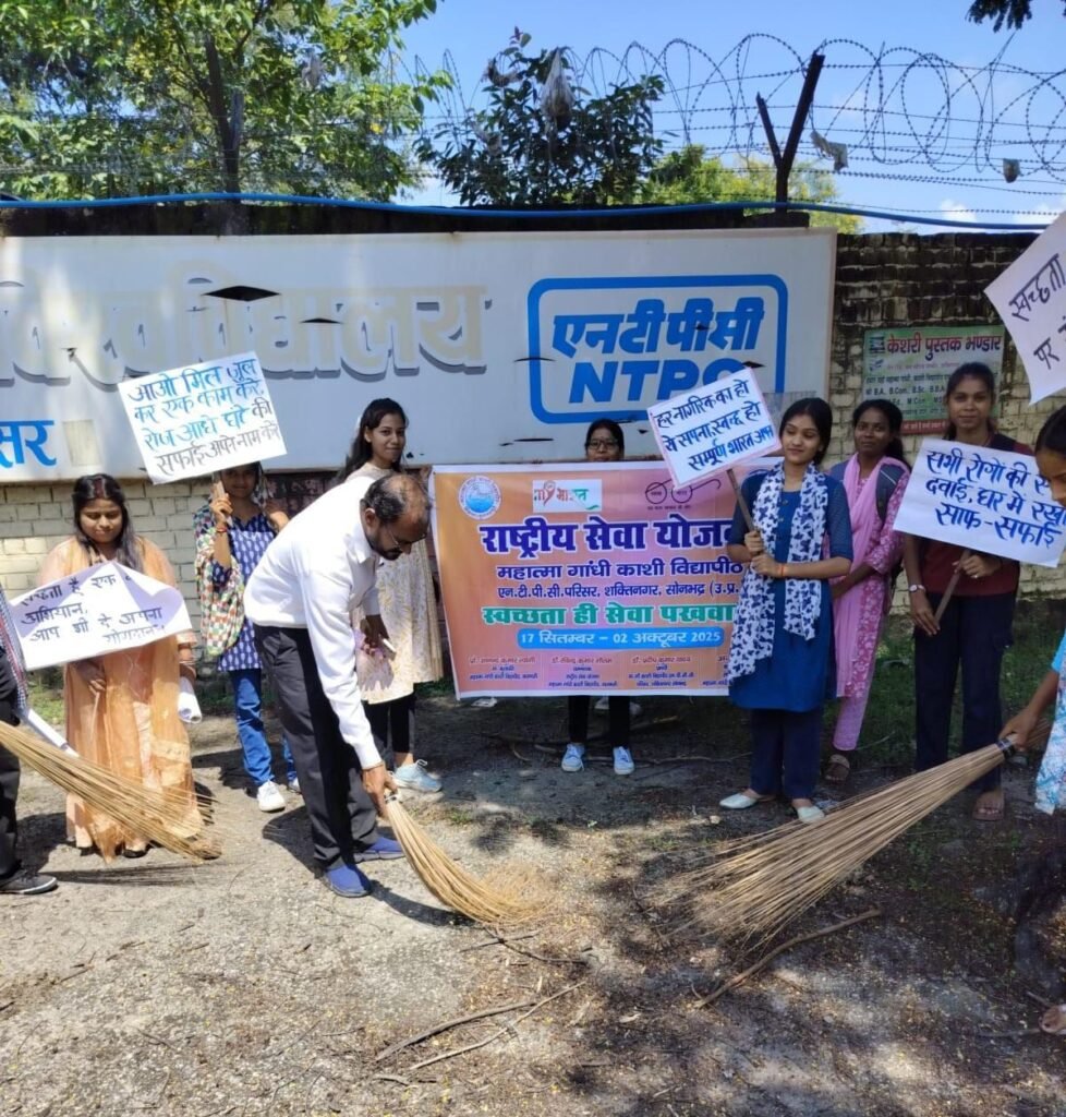 शक्तिनगर(सोनभद्र)। महात्मा गांधी काशी विद्यापीठ एनटीपीसी परिसर में राष्ट्रीय सेवा योजना इकाई द्वितीय के द्वारा स्वच्छता अभियान के तहत छात्र-छात्राओं ने परिसर के बाहर मुख्य द्वार के आस पास अपना श्रमदान किया। इसके साथ ही छात्र-छात्राओं ने स्वच्छता अभियान के तहत पोस्टर बनाकर लोगों को जागरूक करने के लिए रैली निकालते हुए विभिन्न नारों के माध्यम से लोगों को जागरूक किया। “सभी रोगों की एक दवाई, घर में रखो साफ सफाई “, ” हर नागरिक का हो यह सपना, स्वच्छ हो संपूर्ण भारत अपना” जैसे नारे लगाकर स्वच्छता सेवा पखवाड़ा मनाया गया।