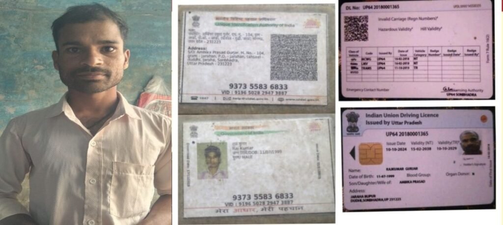 बीजपुर(सोनभद्र)। जनपद के स्थानीय थाना क्षेत्र ग्राम पंचायत जरहा टोला राजो के राजकुमार पुत्र अम्बिका प्रसाद (राजकुमार) को ड्राइविंग लाइसेंस में नाम सुधार करवाने के लिए कई महीनो से आरटीओ के चक्कर लगाने पड़ रहे हैं। युवक का आरोप है कि ड्राइविंग लाइसेंस में उसका नाम राजकुमार गुर्जर गलत लिखा गया है, जबकि आधार कार्ड पर उसका नाम राजकुमार है।